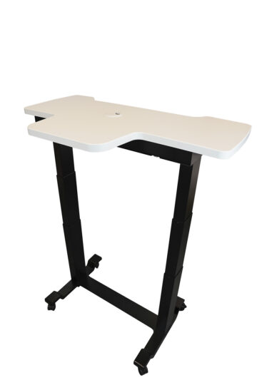 A single outlet (electrical and LAN plugs) is easily accessible. The shape of this 1 instrument table top has been exclusively designed to fit between the armrests of wheelchairs. It comes as close as possible to disable patients, thus guaranteeing comfortable examination conditions.